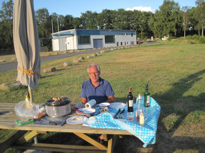 Plan B was om naar het haventje van Borgstedt, vlakbij Rendsburg te gaan. Dit ligt redelijk beschut en mooi tussen de bomen. Hier zijn ook redelijke voorzieningen en een goed uitgangspunt voor fiets-en wandeltochtjes. Na 18 mijl op het kanaal kwamen we daar aan en het bleek inderdaad aan de verwachtingen te voldoen. Zelfs wifi is er, mits je op de goede plaats gaat liggen. Er lagen zo'n 20 boten, waarvan 3 Nederlanders. Er is een open "woonkamer", waar boeken en tijdschriften staan, televisie tot de beschikking etc.