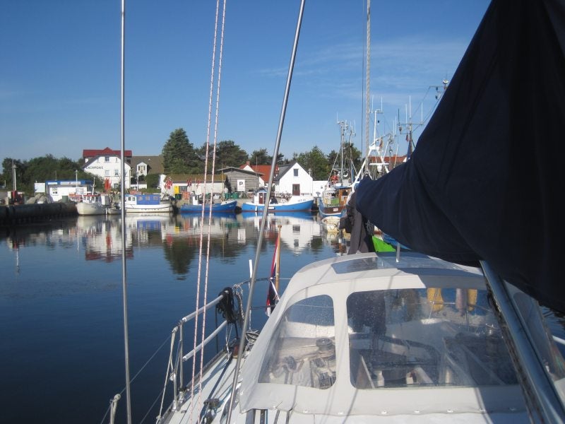 De wekker loopt af om 4:00 uur. Ons staat een tocht van ruim 65 mijl aan de wind te wachten naar Rønne op het Deense eiland Bornholm. Vertrek om 5:00 uur. Het is net niet bezeild. Wind vandaag NO3, later neemt deze af. We komen om 18:45 uur aan in onze eerste Deense havenplaats. De betaalautomaat met creditcard krijg ik niet aan de praat. Vandaag op het log 73 mijl.