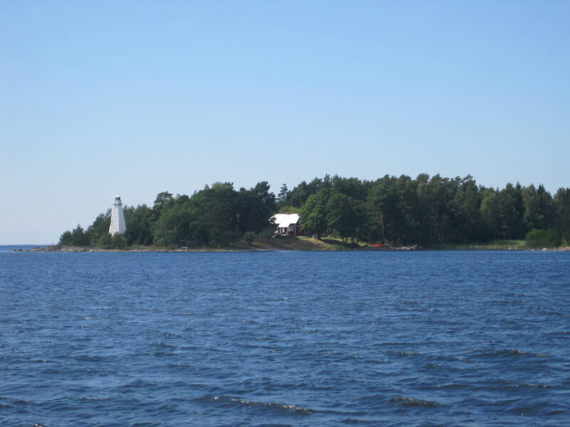 Marian werd al voor het aflopen van de wekker om 7:00 uur wakker van de warmte. Zodoende waren we om 8:00 uur weer al onderweg. Na een uur realiseerden we ons, dat we de laatste nacht in Läckö niet hadden betaald. De vorige dag was een meisje aan boord komen afrekenen en gisteren hebben we niemand gezien. We hebben de laatste weken op het Götakanaal nergens hoeven afrekenen, dus het loopje naar het havenkantoor om te betalen moeten we er weer opnieuw inbrengen. Om nu weer een uur terug te varen vonden we ook wat overdreven. Als we hier ooit nog eens komen, zullen we het goedmaken!
